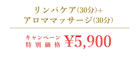 • リンパケア(30分)+アロママッサージ(30分)|¥3,900